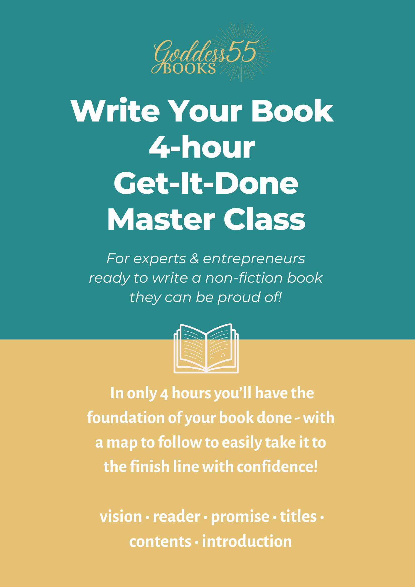 Save 90% when you register now! In this 4-hour get-it-done, interactive experience, you will be guided, step by step, through Phase 1 of your book, with personal feedback and Q&A time.